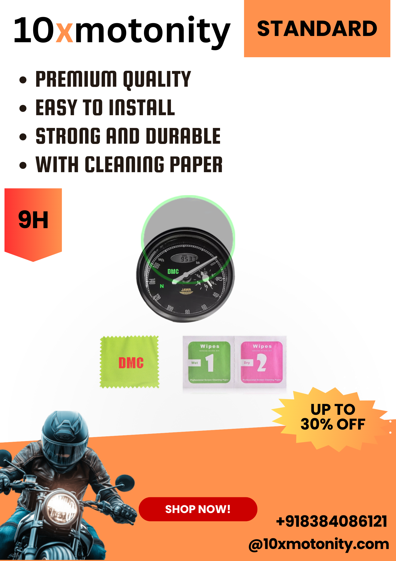Protect your Jawa motorcycle’s speedometer with this premium-quality screen guard, specially designed for Jawa Classic, Jawa Perak, and Jawa 42 (Forty Two) models. This scratch-resistant screen protector offers complete protection against everyday wear, dust, dirt, UV rays, and unwanted scratches.