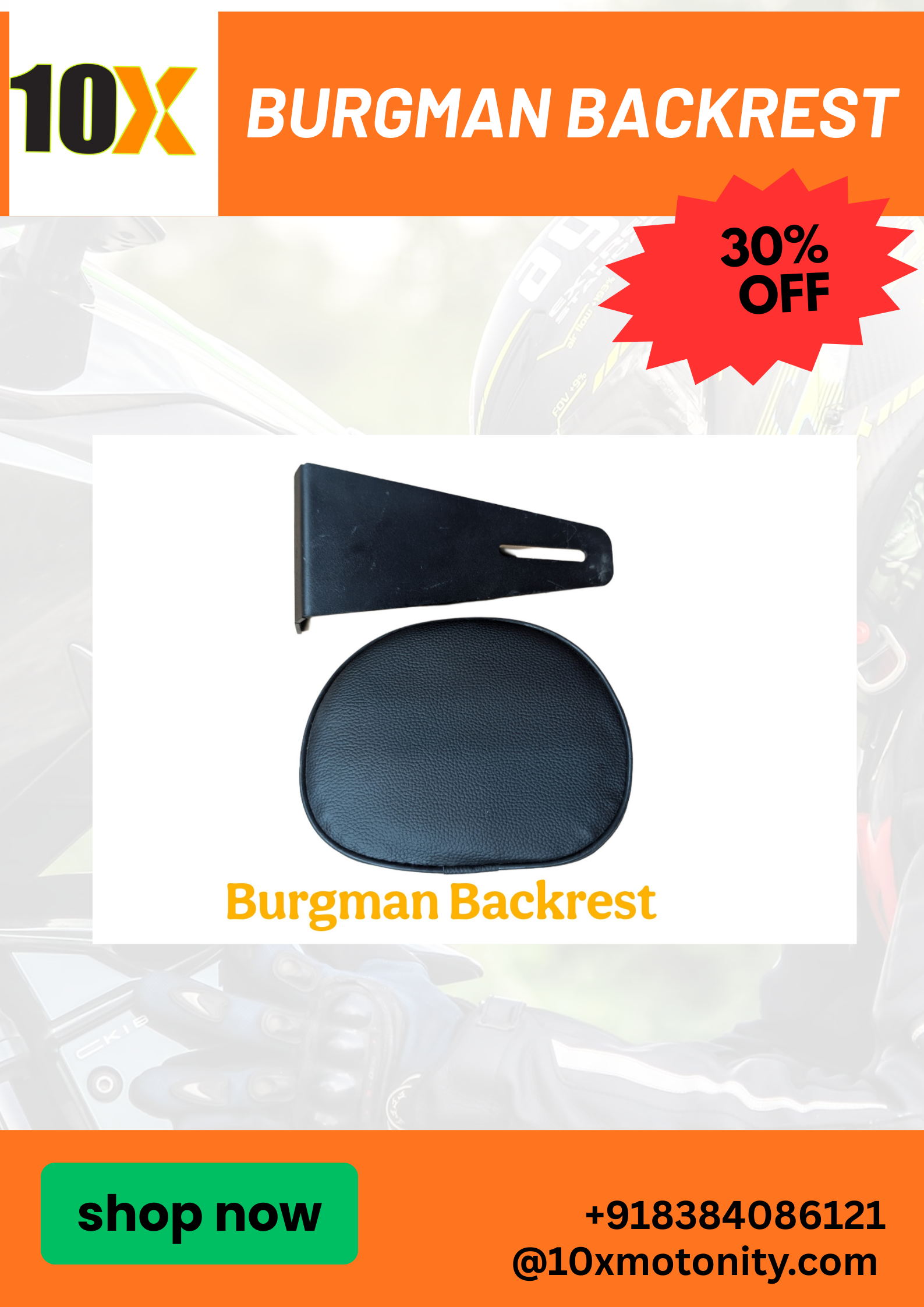 Upgrade your riding comfort with our premium backrest designed for Burgman. Whether you’re heading out on long highway rides or daily city commutes, this backrest offers unmatched support, safety, and comfort for your pillion rider.