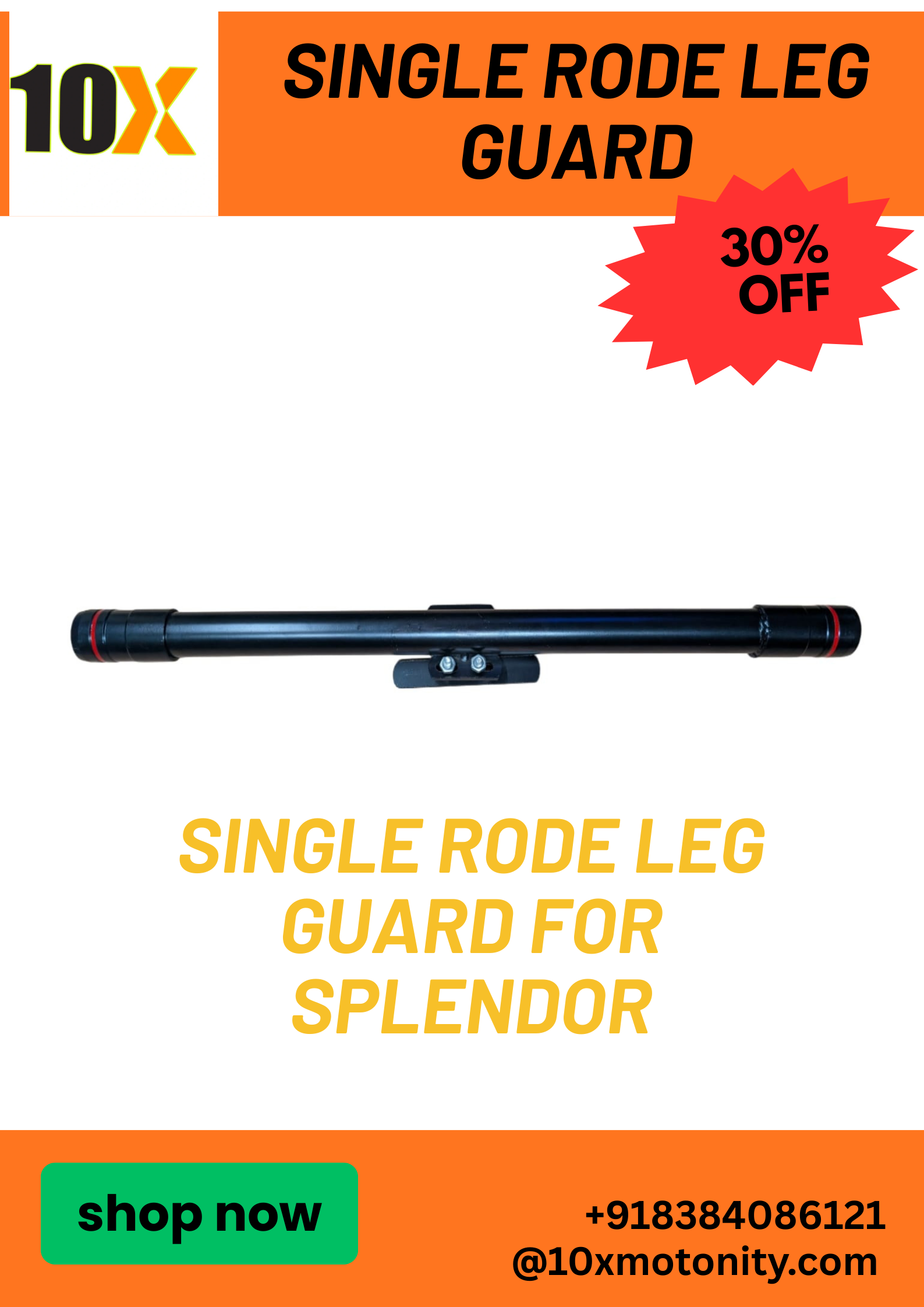 Its sleek and sturdy single-rod design not only enhances the bike’s appearance but also ensures long-lasting durability. The leg guard is corrosion-resistant, easy to install, and perfectly compatible with all Hero Splendor models.