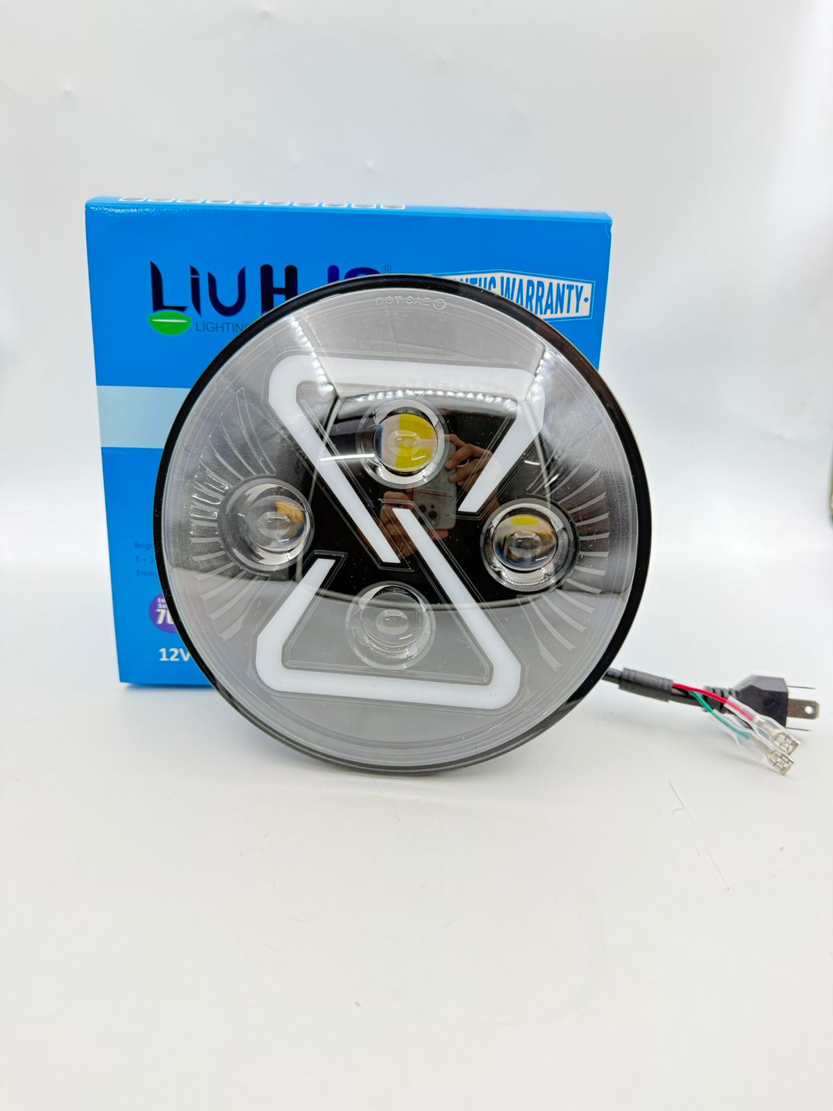 HJG 7 Inch LED Headlight Illuminate your adventure with the HJG 7 Inch LED Headlight. Designed to elevate the look and performance of your vehicle, this cutting-edge headlight packs a powerful punch with its 75-120W CREE/Osram LED technology. Experience unmatched brightness and clarity on the road. Key Features: Dazzling RGB Colours: Customize your ride’s appearance with a vibrant spectrum of colours. Superior Brightness: Powerful CREE/Osram LEDs deliver exceptional illumination for enhanced visibility. Versatile Compatibility: Perfect fit for Royal Enfield, Jeep, Thar, and Gypsy models. Durable Construction: Built to withstand tough conditions for long-lasting performance. Upgrade your vehicle’s style and functionality with the HJG 7 Inch RGB LED Headlight. Powerful Illumination: Delivers a blinding 75-120W brightness using high-performance CREE/Osram LEDs for superior visibility. RGB Colour Customization: Express your style with a vibrant range of colours to match your vehicle’s personality. Wide Compatibility: Designed to fit seamlessly on Royal Enfield, Jeep, Thar, and Gypsy models for a hassle-free upgrade. Durable Construction: Built to withstand tough conditions with a robust design for long-lasting performance. Enhanced Visibility: Illuminate the road ahead with a wider light pattern for safer night driving. Energy Efficient: Consumes less power while delivering maximum brightness. Easy Installation: Simple plug-and-play design for quick setup. Modern Design: Sleek and stylish appearance to complement your vehicle’s aesthetics. Compatible for RE Bike, Thar, Gypsy, Mahindra, Jeep.