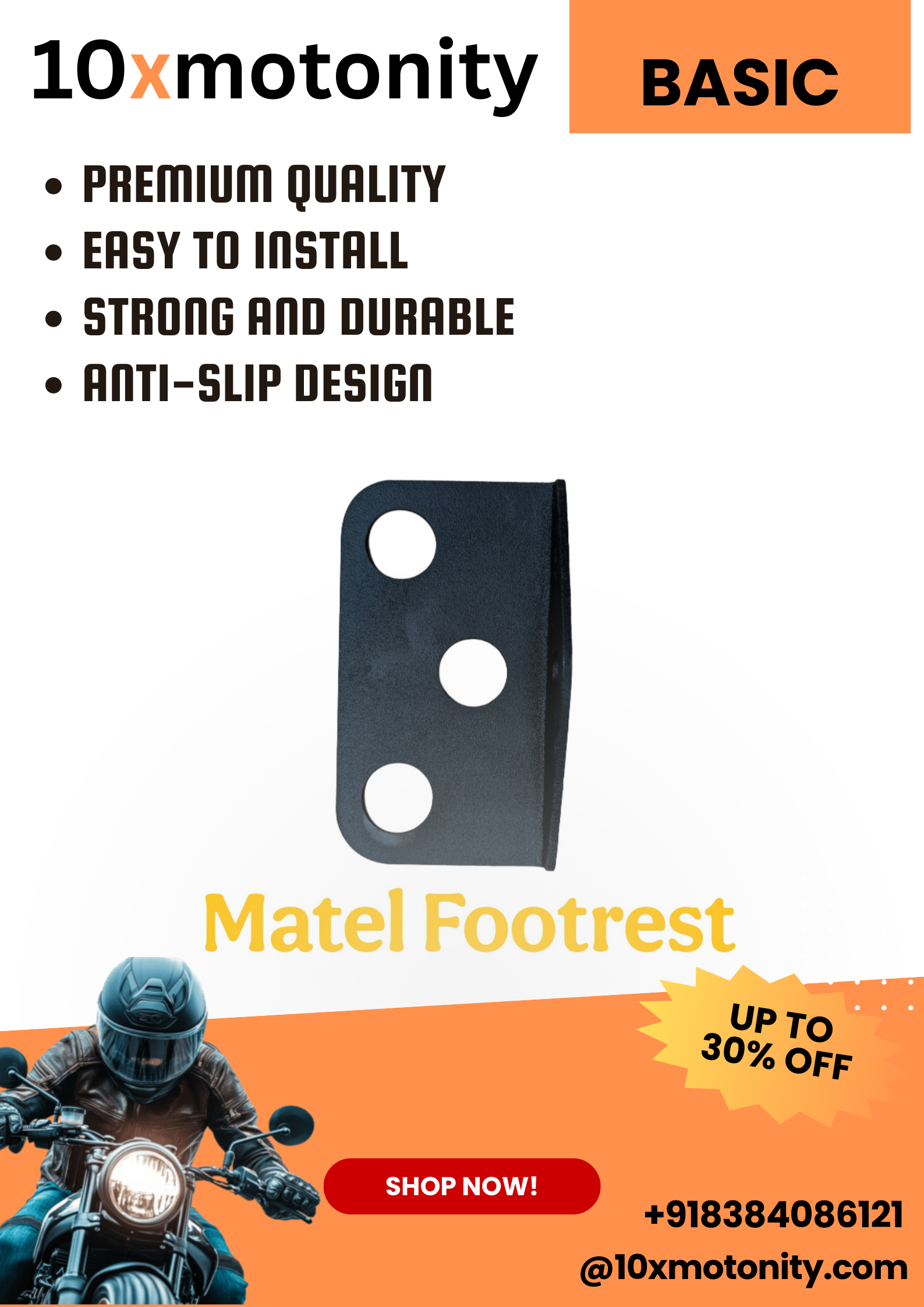 Upgrade your bike’s comfort and style with our Heavy-Duty Metal Footrest – designed for reliable support and long-lasting durability.