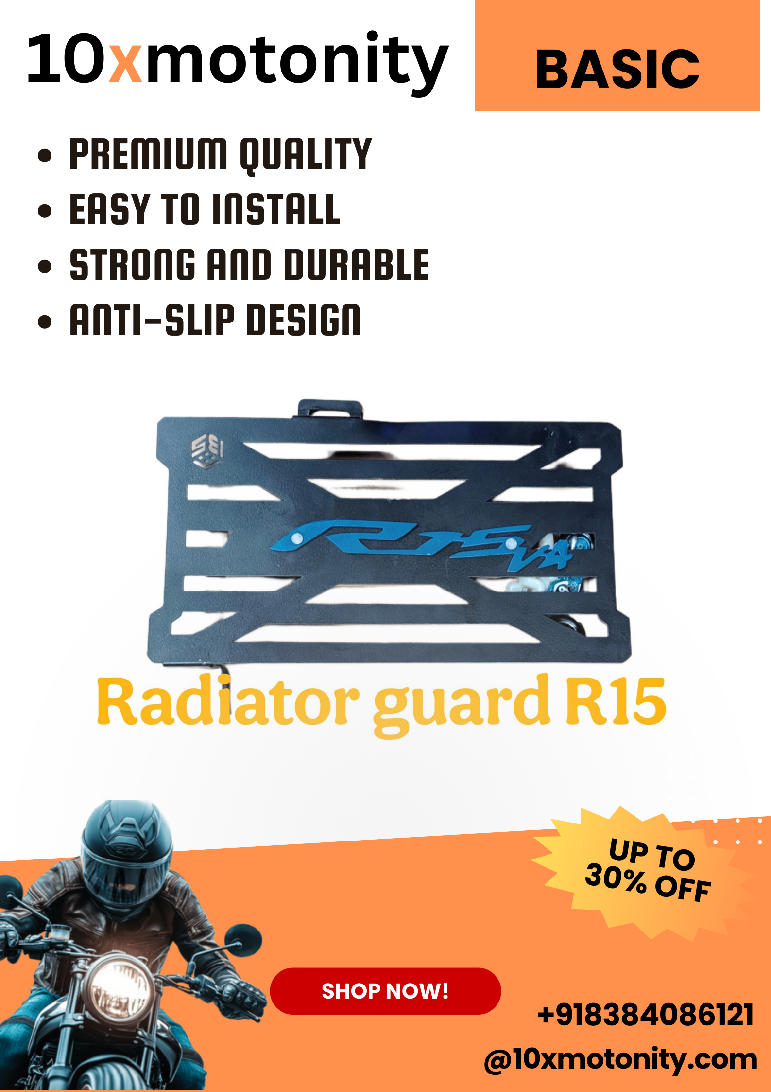 Protect your Yamaha R15’s radiator from debris, stones, and road damage with this high-quality radiator guard, designed specifically for the R15 bike model. Crafted from premium-grade metal, this guard offers excellent protection without compromising airflow, ensuring your bike’s cooling system functions efficiently.