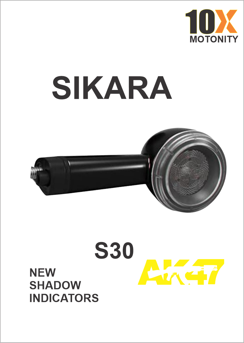 Upgrade your bike with the Shadow Indicator (Projector Indicator) Sikara S30, a perfect fusion of style, safety, and attitude. Inspired by the bold AK 47 text, this projector indicator displays a unique shadow projection every time you signal a turn, making your bike look cool, confident, and stylish.