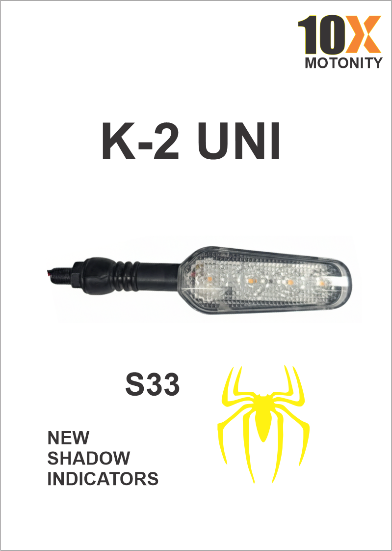 Upgrade your bike’s style and personality with the Shadow Indicator (Projector Indicator) K2 UNI S33. Featuring the Spider Shadow, this projector indicator displays a unique spider-shaped shadow every time you signal a turn, giving your bike a cool, confident, and edgy look.