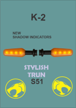 Bring power and personality to your ride with the Shadow Indicator K2 Yama S51. Designed for sport and superbikes, this projector-style indicator flashes the bold Thunder Cat Logo, symbolizing confidence, strength, and cool attitude. When the light turns on, it projects the Thunder Cat shadow, giving your bike a unique and head-turning appearance.