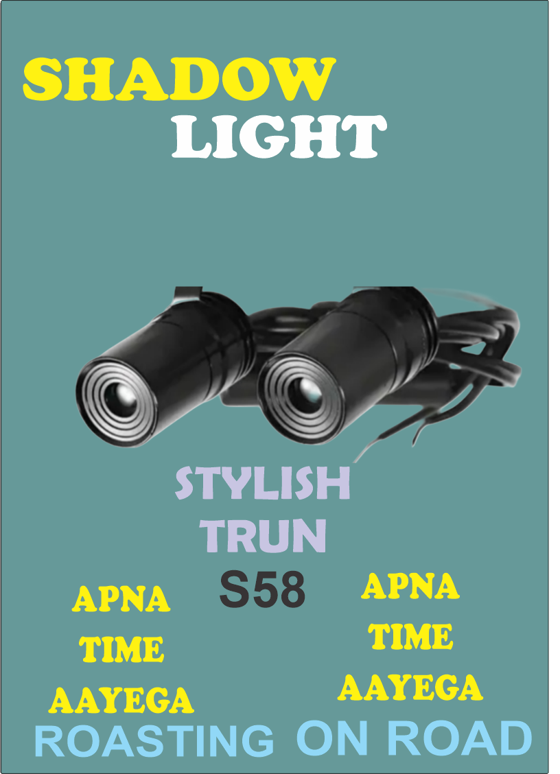 Elevate your bike’s style and attitude with the Shadow Light S58. This projector-style Light projects the viral phrase “Apna Time Ayega” every time you signal, giving your ride a bold, confident, and playful vibe. Perfect for riders who want to stand out on the streets, this Light adds a modern pop-culture edge to your bike while keeping it fully functional.