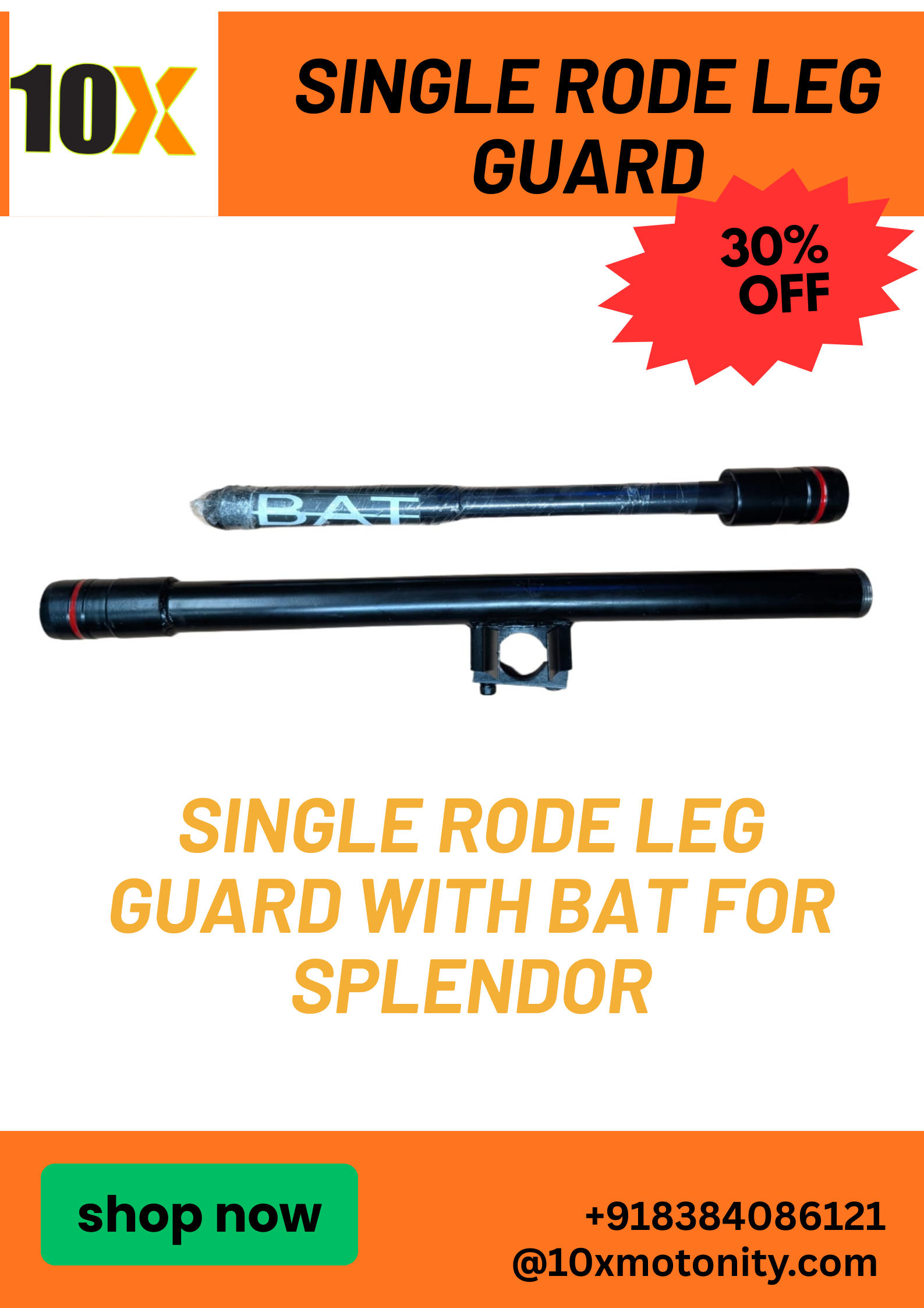 Ideal for riders who want to protect their bike while enhancing its personality, this single rod leg guard with bat plate is a smart and stylish choice for your Hero Splendor.